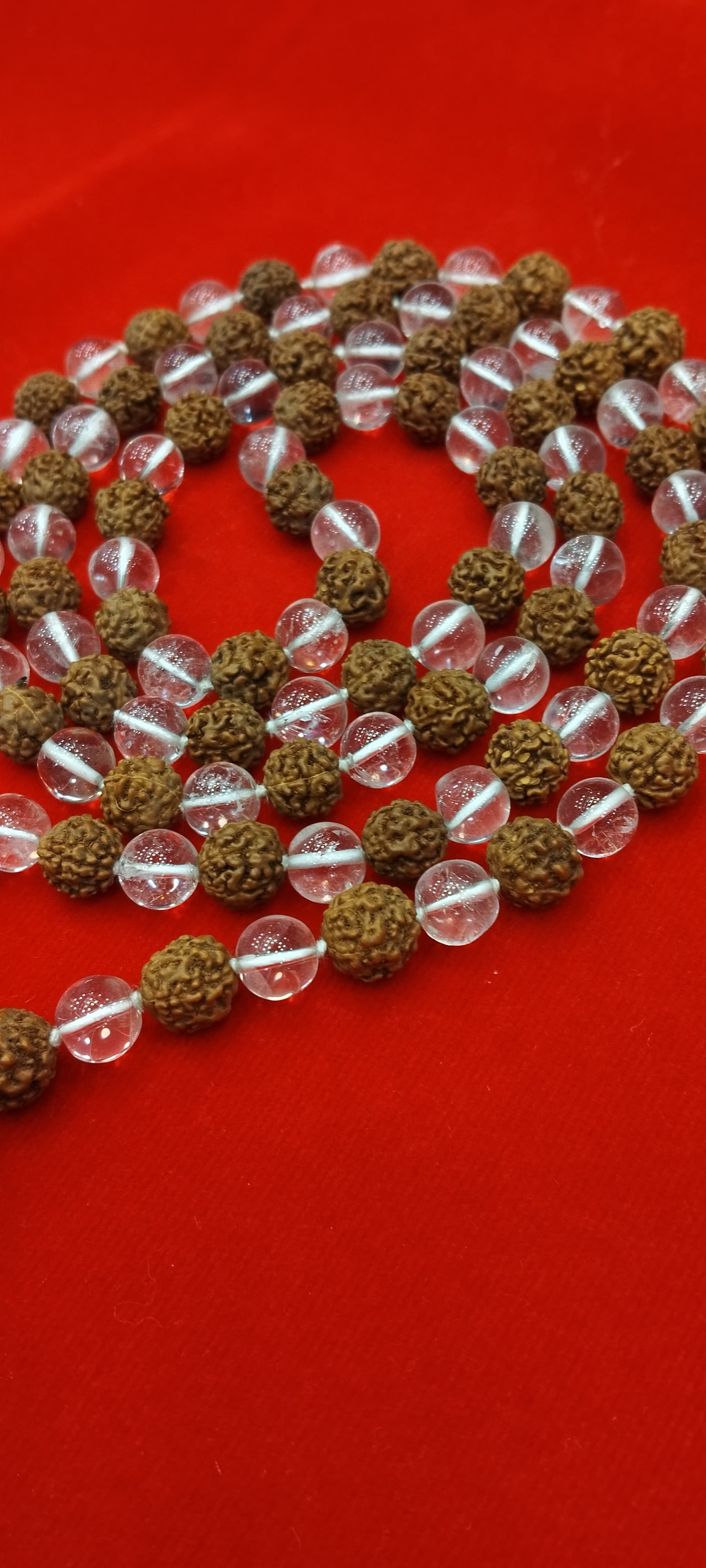 Type: Rudraksha beads are approximately 6-7mm in diameter, and Sphatik beads are crystal clear, offering a cooling effect.
