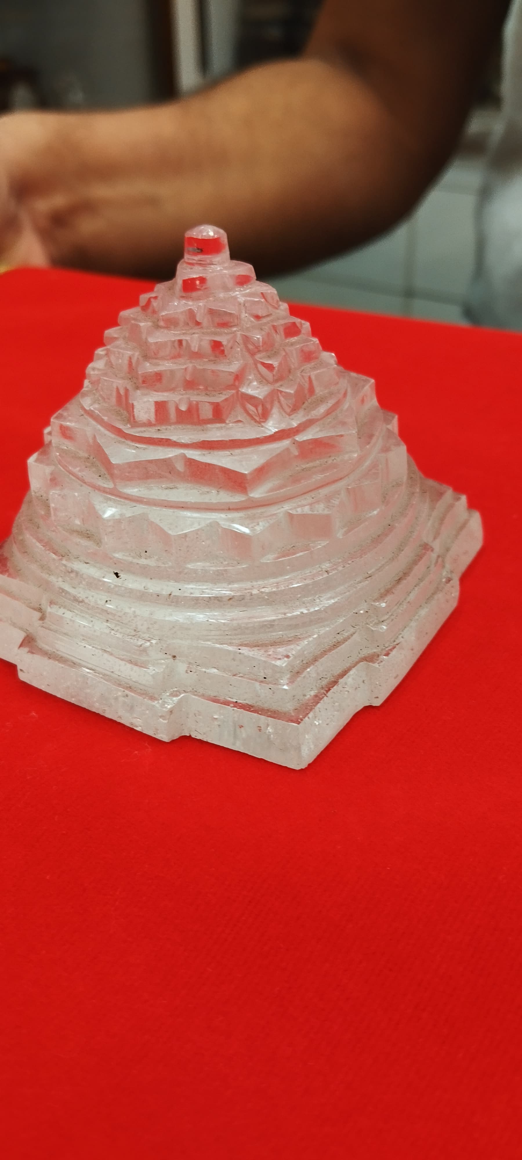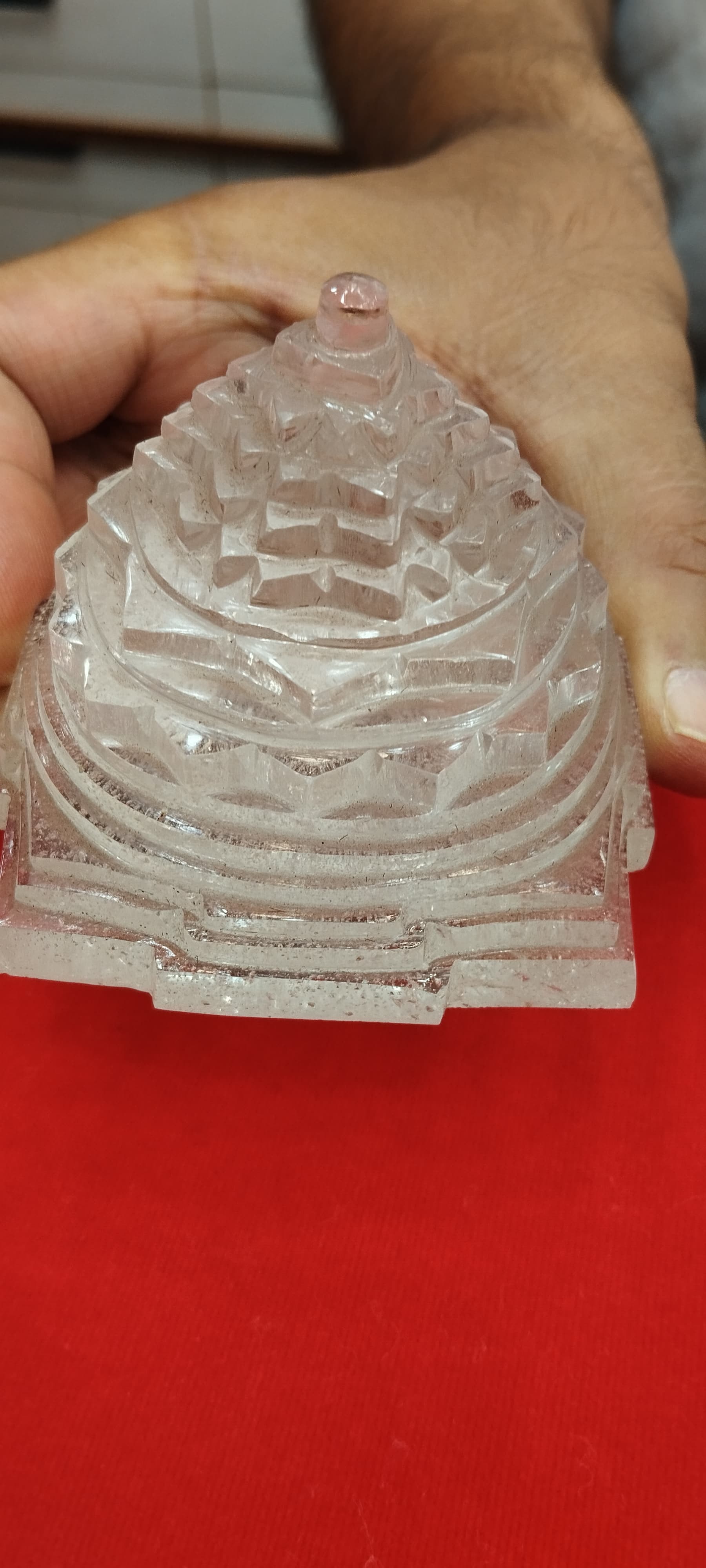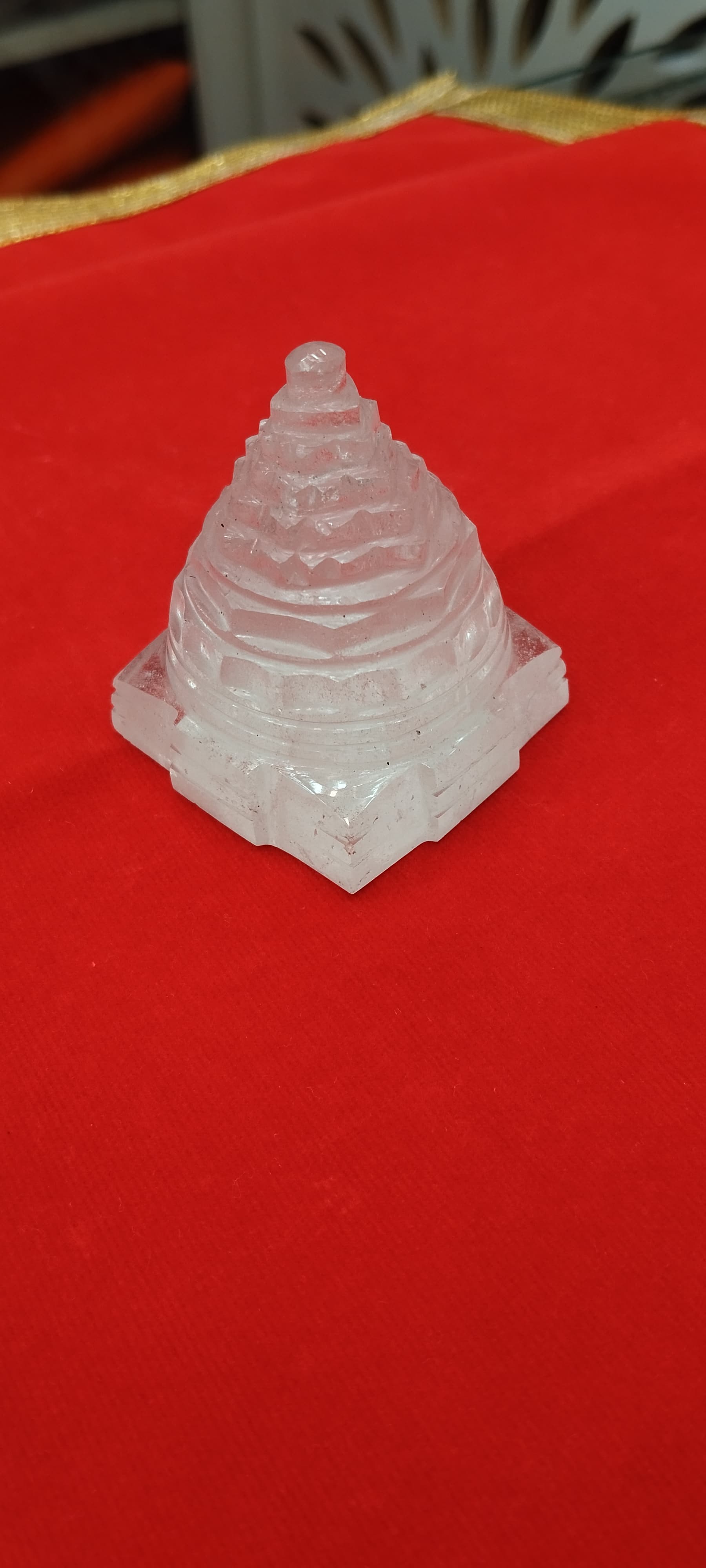 The Sphatik Shriyantra is a sacred geometric object made from clear crystal (Sphatik). It is believed to bring prosperity, peace, and harmony into one's life by balancing energy and removing negative influences.