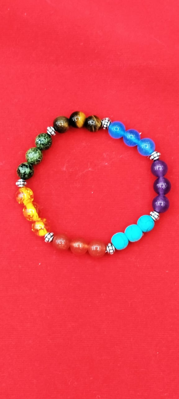 The Seven Chakra Bracelet is a powerful accessory designed to balance and align the seven chakras in the body. Each bead corresponds to a specific chakra, promoting overall well-being, spiritual growth, and energy balance.